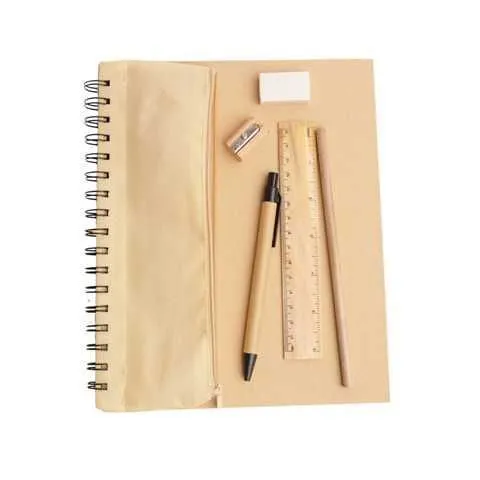 CUADERNO ECOLOGICO A5 + CARTUCHERA C/ACCESORIOS - KRAFT
