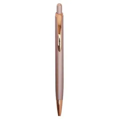 Este bolígrafo metálico presenta un sofisticado acabado oro rosa y un clip curvo distintivo. Su pintura al horno garantiza durabilidad y un brillo excepcional para regalos ejecutivos.