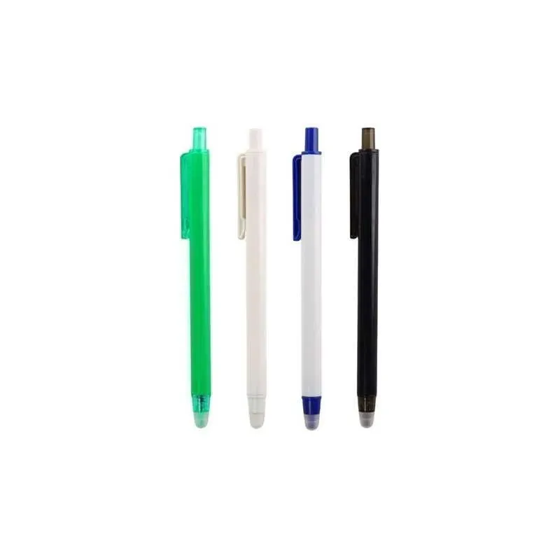 Bolígrafo plástico borrable, ideal para quienes necesitan escribir, corregir y volver a empezar sin complicaciones. Su diseño ligero y práctico lo hace perfecto para uso escolar, administrativo o promocional, combinando funcionalidad con una presentación limpia y moderna.