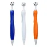 Bolígrafo de plástico con tinta azul y diseño deportivo, destacado por su remate superior en forma de balón de fútbol, ideal para promociones y eventos relacionados con el deporte. Ligero, cómodo de usar y con un estilo llamativo, es una excelente opción como artículo publicitario o regalo promocional.