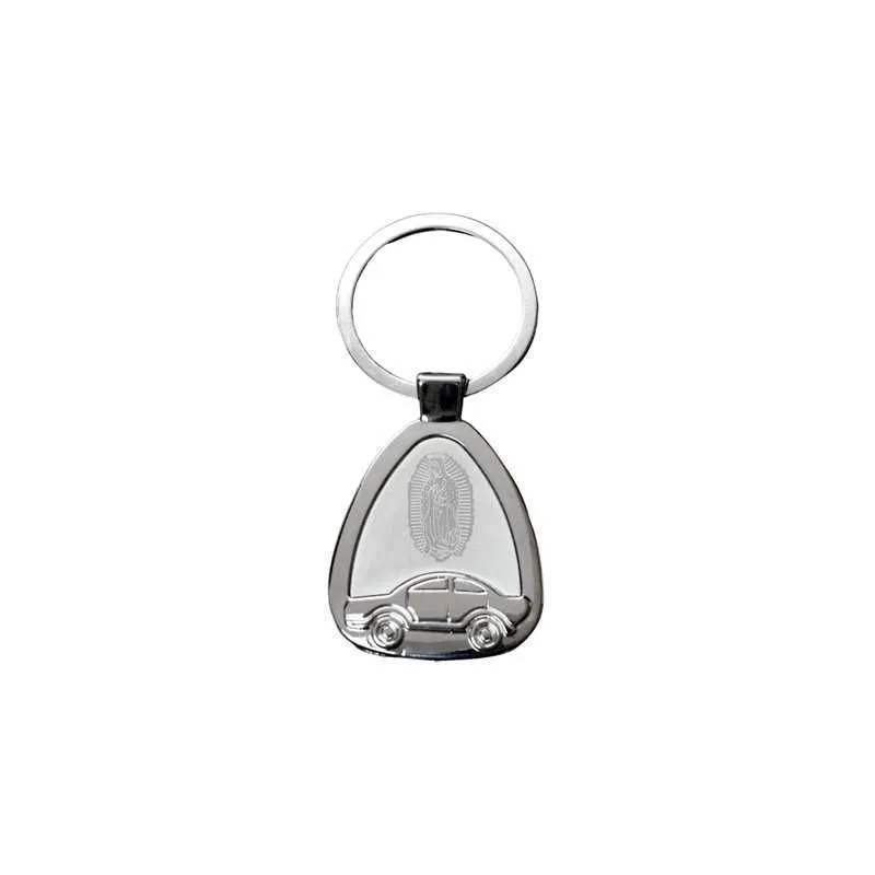Una pieza que protege y acompaña cada viaje. La forma triangular ovalada enmarca la imagen de la Virgen, mientras el auto simboliza movimiento y progreso. Un llavero que inspira seguridad, fe y confianza, recordando que cada camino puede recorrerlo con cuidado y esperanza.