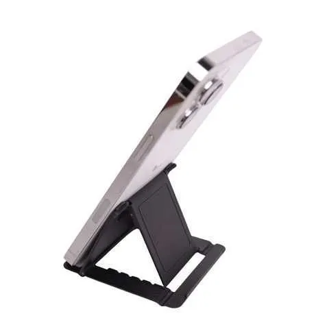 La clave está en la portabilidad. A diferencia de los soportes fijos, este se adapta a tu ritmo de vida. Su estructura de plástico de alta resistencia y sus múltiples niveles de apertura ofrecen una estabilidad confiable para smartphones de diversos tamaños, todo bajo una estética moderna y minimalista que resalta en cualquier espacio.