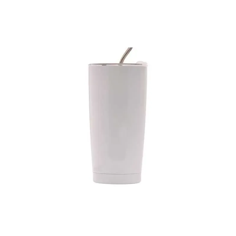 VASO TERMICO ACERO INOX. § 600ml. D/TAPA, C/SORBETE - BLANCO