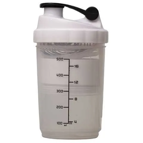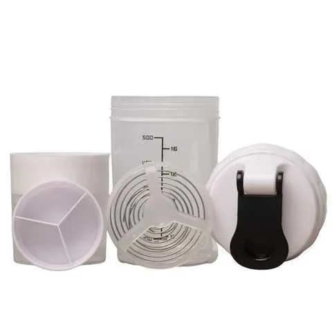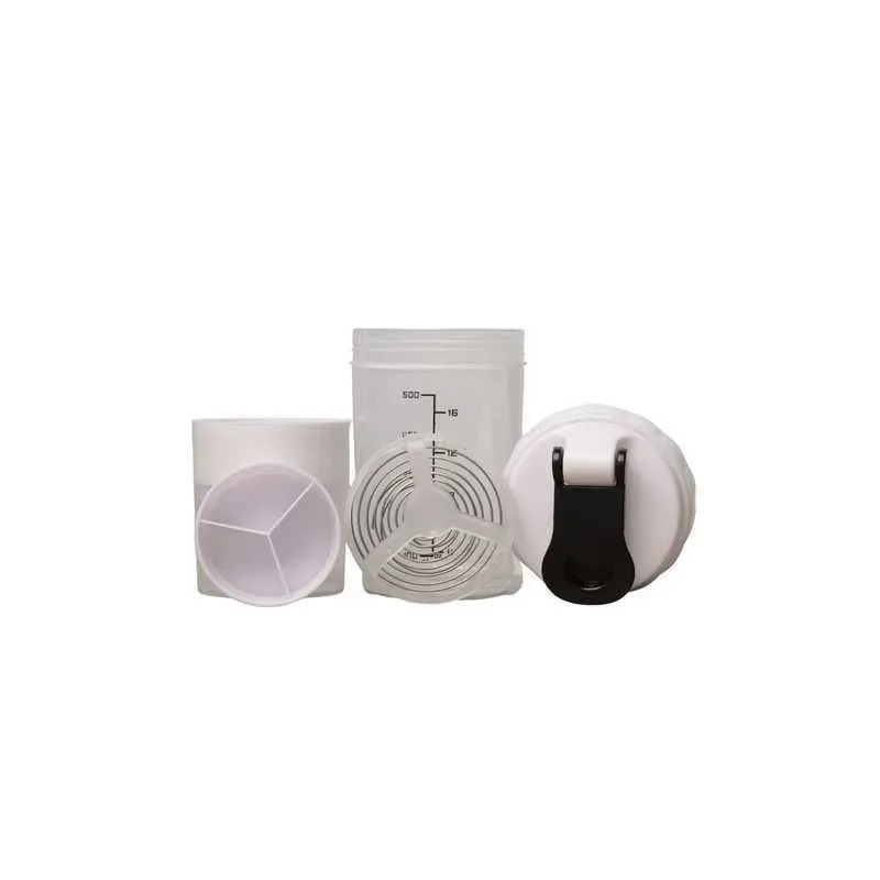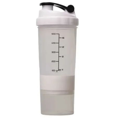 Este shaker de plástico resistente es el aliado ideal para tu rutina de gimnasio. Gracias a su tapa de seguridad y secciones desmontables, ofrece una solución compacta para preparar tus batidos frescos en cualquier momento y lugar.