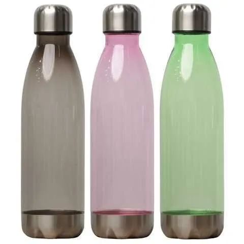 Este sofisticado tomatodo combina un cuerpo de plástico traslúcido con detalles en acero inoxidable. Su silueta estilizada y tapa metálica ofrecen un diseño minimalista, ideal para marcas que buscan proyectar una imagen fresca, profesional y de alta calidad.