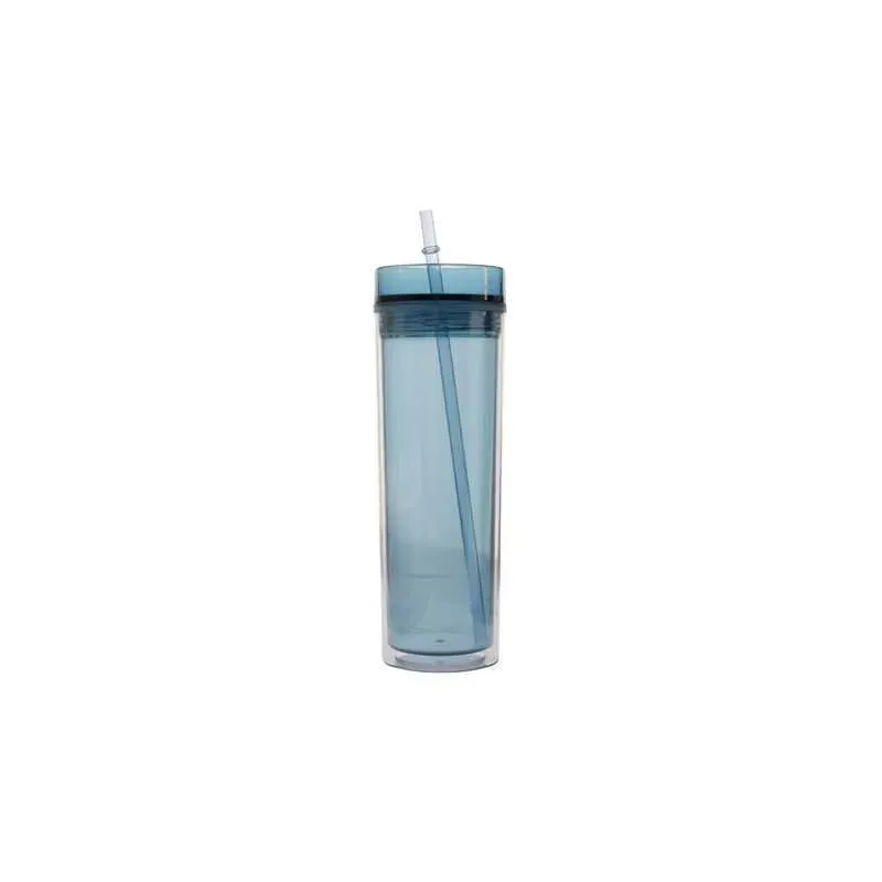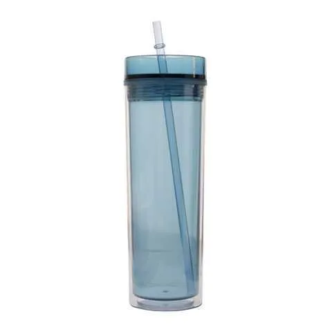 TOMA TODO PLASTICO 480ml. C/TAPA ROSCA + SORBETE - AZUL
