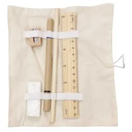 Organiza tus ideas en un estuche que respira conciencia ambiental. Con seis piezas fundamentales, incluyendo regla, lápices y sacapuntas de madera, este set ofrece una experiencia cálida y auténtica. Su cierre con botón asegura que tus implementos estén siempre protegidos con un diseño minimalista y atemporal.